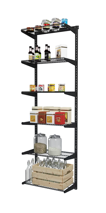 В комплект 416 входит: несущий рельс Титан GS 1000, 2 стойки Титан GS 1920, 12 кронштейнов для размещения полок Титан GS 435, 6 сетчатых полок Титан GS 903х406. Дополнительно можно установить: полки для обуви Титан GS, корзины выдвижные и стационарные Титан GS, разделитель-боковин корзины, перекладины, кронштейны.