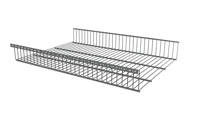 Корзина стационарная Титан GS - промежуточный вариант между классической полкой и выдвижной корзиной. Высокий борт позволяет хранить круглые вещи без риска их падения. Также возможно установить разделитель/боковины, чтоб достигнуть максимальной практичности при использовании. Устанавливается на кронштейны полок Титан GS (в комплект не входят). Выдерживает нагрузку до 80 кг. Покрытие: порошково-полимерное, гипоаллергенное и устойчивое к механическому воздействию. Цвет: серебристый.