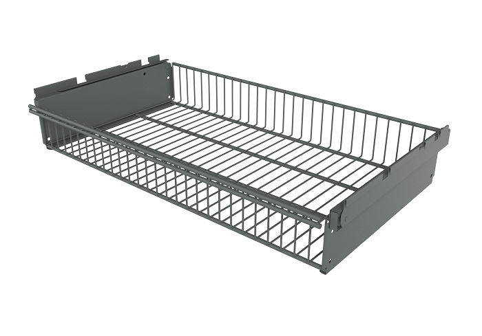 Корзина выдвижная Титан GS предназначена для установки на гардеробную систему. Изготовлена из проволоки, такой же как и сетчатые полки Титан GS. Учитывая крупноячеистую структуру, выдвижные корзины являются отличным вариантом для хранения одежды, поскольку обеспечивается отличная вентиляция вещей. Корзина выдерживает до 35 кг при ее равномерном распределении. Устанавливается на кронштейны полок Титан GS (в комплект не входят). Покрытие: порошково-полимерное, гипоаллергенное и устойчивое к механическому воздействию. Цвет: серебристый.