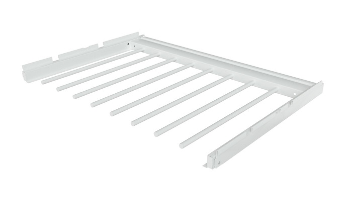 Брючницы Титан GS лучшее решение для организации хранения брюк и джинсов. Выдвижной механизм обеспечивает легкий доступ к вещам. Возможно размещать до 8 пар брюк или джинсов любых размеров. Выдерживает нагрузку до 25 кг. Брючница устанавливается на кронштейны полок. Покрытие: порошково-полимерное, гипоаллергенное и устойчивое к механическому воздействию. Цвет: белый