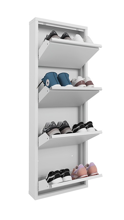 Обувница Практик ОМ-4 белая предназначена для хранения обуви. Обувница состоит из четырех отделений, каждое отделение вмещает 2 пары обуви (до 43 размера). Изготовлена из стали, поставляется в собранном виде. Цвет: белая Ral 9003. Тип покрытия: порошковое