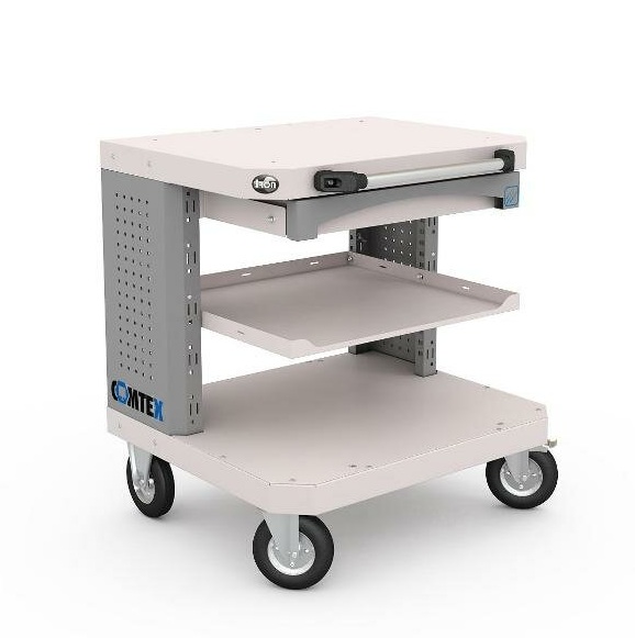 Дополнительно на тележку можно установить: выдвижную полку Comtex, выдвижной ящик Comtex, кронштейн для монитора, кронштейны для RACK модуля, цоколь для тумбы Comtex, лоток для тумбы/тележки Comtex, карман для документов А4 и другие аксессуары.
