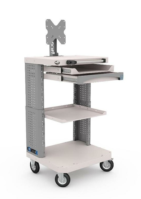 Дополнительно на тележку можно установить: выдвижную полку Comtex, выдвижной ящик Comtex, кронштейн для монитора, кронштейны для RACK модуля, цоколь для тумбы Comtex, лоток для тумбы/тележки Comtex, карман для документов А4 и другие аксессуары.