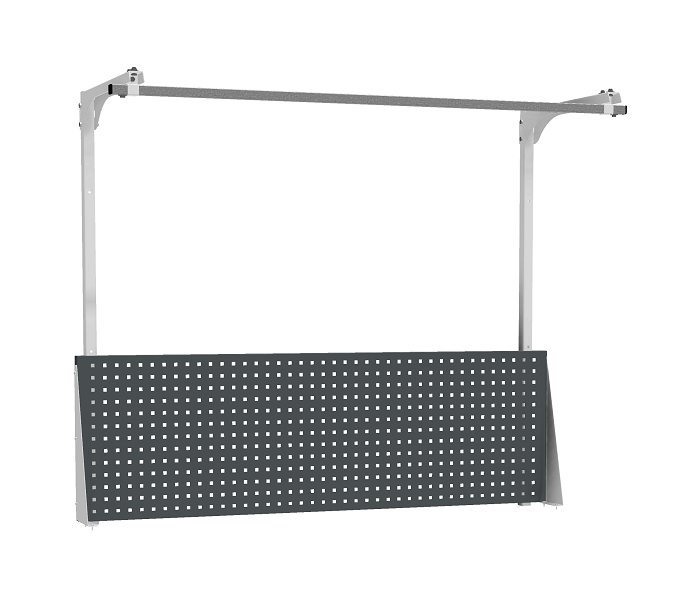 В комплектацию верстака входит: столешница ВЛ-К 150, одна опора ВЛ-К, косынки для опоры ВЛ-К, тумба ВЛ-К-010, один перфорированный экран ВЛ-К-150-Э2. Столешница выполнена из фанеры (24 мм) с покрытием из оцинкованного листа металла. Тумба ВЛ-К-010 комплектуется 2 полками и дверью. Закрывается центральным ключевым замком (50 000 циклов). Опора сварная. Размер опоры (ВхШхГ) - 800х40х660 мм. Перфорированный экран предназначен для размещения навесных аксессуаров. В комплекте экрана: один экран, комплект упоров, две стойки, перекладина-направляющая. Размер квадратной перфорации 10х10 мм, шаг установки аксессуаров 35 мм.