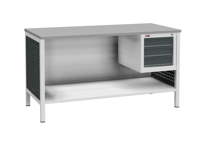 Тумба ВЛ-К-003 предназначена для установки на верстак серии ВЛ-К. Комплектуется 3 выдвижными ящиками. Полезный размер ящиков: (ВхШхГ) 80х306х459 мм. Тумба закрывается центральным ключевым замком (50 000 циклов). Цвет: серый Ral 7038, лицевая панель ящиков антрацит Ral 7016. Тип покрытия: эпоксидная порошковая краска
