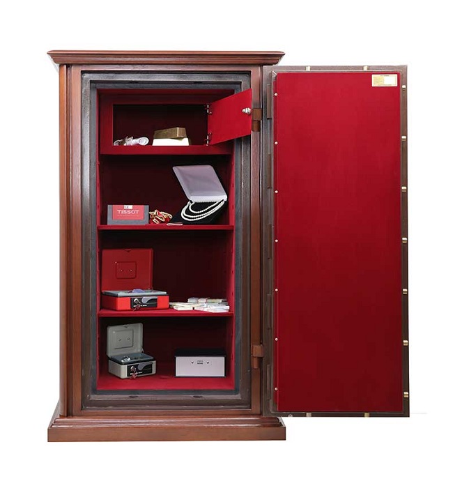 Valberg Гарант Евро 133 Т Д (дуб) предназначен для сохранности документов и ценностей при пожаре и взломе. Рекомендованная сумма хранения денег до 6,5 млн. руб. для физических лиц и до 2 млн. руб. для юридических лиц. Устойчивость к взлому по ГОСТ Р 50862-2017: класс 2 (ГОСТ Р). Огнестойкость: ГОСТ Р 57384-2017: класс 60Б (ГОСТ Р). При заливке двери и корпуса сейфа используется запатентованная система армирования огнестойкого бетона. Толщина защитного слоя двери - 33 мм, общая толщина двери - 105 мм. Толщина боковых стен -77 мм, задней стенки - 51 мм. В сейф установлена: 3х сторонняя ригельная система запирания; защита замка и ригелей от высверливания и выбивания; система блокировки ригельного механизма при выбивании замка; тепловой замок, усиленный огнестойким уплотнителем. Сейф Valberg Гарант Евро 133 Т Д (дуб) закрывается ключевым замком KABA MAUER (под заказ возможно установить - электронный кодовый замок PS610/E036; биометрический кодовый замка PS610FD/E36FD). Предусмотрена возможность анкерного крепления к полу (анкерный болт в комплекте). Внешняя отделка выполнена из натурального дерева, внутренняя отделка из бархата. Покрытие ручек: матовый хром или золото. Цвет: корпус - №11-А, внутренняя отделка - С-1059. Возможны другие варианты окрашивания.