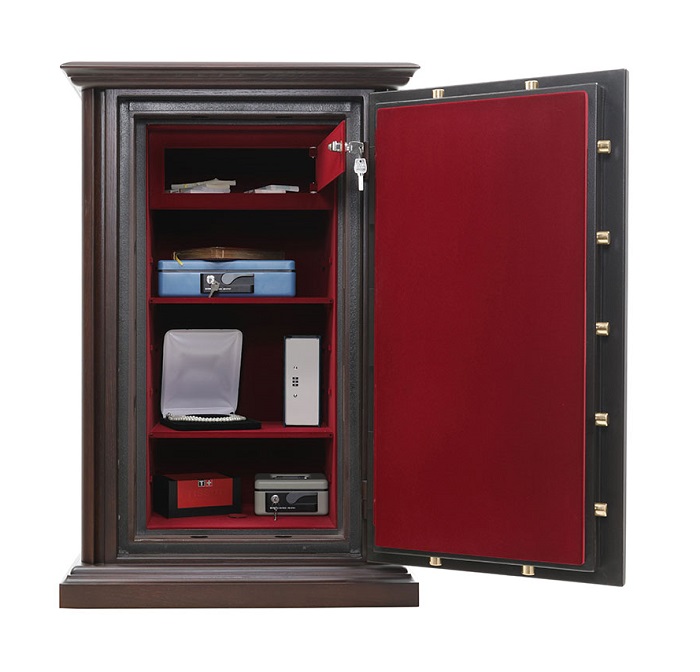 Valberg Гарант Евро 95 Т Д предназначен для сохранности документов и ценностей при пожаре и взломе. Рекомендованная сумма хранения денег до 6,5 млн. руб. для физических лиц и до 2 млн. руб. для юридических лиц. Устойчивость к взлому по ГОСТ Р 50862-2017: класс 2 (ГОСТ Р). Огнестойкость: ГОСТ Р 57384-2017: класс 60Б (ГОСТ Р). При заливке двери и корпуса сейфа используется запатентованная система армирования огнестойкого бетона. Толщина защитного слоя двери - 33 мм, общая толщина двери - 105 мм. Толщина боковых стен -77 мм, задней стенки - 51 мм. В сейф установлена: 3х сторонняя ригельная система запирания; защита замка и ригелей от высверливания и выбивания; система блокировки ригельного механизма при выбивании замка; тепловой замок, усиленный огнестойким уплотнителем. Сейф Valberg Гарант Евро 95 Т Д (дуб) закрывается ключевым замком KABA MAUER (под заказ возможно установить - электронный кодовый замок PS610/E036; биометрический кодовый замка PS610FD/E36FD). Предусмотрена возможность анкерного крепления к полу (анкерный болт в комплекте). Внешняя отделка выполнена из натурального дерева, внутренняя отделка из бархата. Покрытие ручек: матовый хром или золото. Цвет: корпус - №11-А, внутренняя отделка - С-1059. Возможны другие варианты окрашивания.