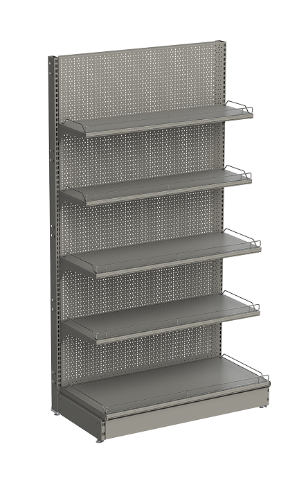 Стеллаж пристенный перфорированный предназначен для оборудования торговых залов и магазинов любых форматов. Относится к основным стеллажам, которые используются в супермаркетах и магазинах самообслуживания. Имеет перфорированную стенку для установки навесных элементов (крючков, карманов, держателей). Изготовлен из высококачественной листовой стали с порошковым покрытием, обеспечивающим долговечность и стойкость.