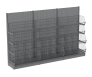 В данную комплектацию входит: 4 стойки 70х30 1900 мм, 4 базы 500, 4 опоры стойки, 8 ножек, 4 опоры стойки, 3 полки 500х1000 мм, 15 стенок перфорированных 350х1000 мм, 6 корзин сетчатых навесных 300х1000х400 мм, 6 корзин сетчатых навесных 300х1000х500 мм, 12 разделителей корзин 400 мм, 12 разделителей корзин 300 мм, 3 плинтуса универсальных 1000 мм.