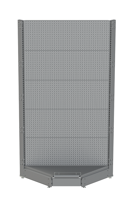 Стеллаж перфорированный угла внутреннего помогает полностью задействовать торговое пространство и продолжить целостность ряда пристенных стеллажей при наличии поворотов и колонн в торговом помещении. Актуален для большинства продуктовых, бытовых и хозяйственных помещений.